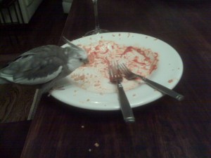She also prefers my mom’s cooking whenever possible. She will tunnel right through the center of one of my mom’s homemade waffles, but turn up her beak at the sight of my Whole Foods organic, gluten-free waffles.