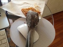 Step Three: Exhibit clear body language when you are full so your assistant (aka me) knows you are ready for the next activity. If you have to flap your wings and scatter the crumbs in a bit wider swathe while communicating (like onto the neighbor’s front porch) so be it.