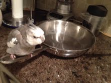 This past Sunday we were hanging out at the folks’ house, and my Mom has a goodly assortment of reflective surfaces, most of which are used for cooking things Pearl and I like to eat.