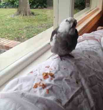 My response, “Oh, I doubt she’ll like peanuts. Plus, they’re too big for her to get her beak around.”