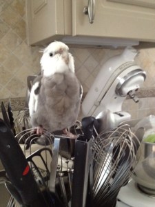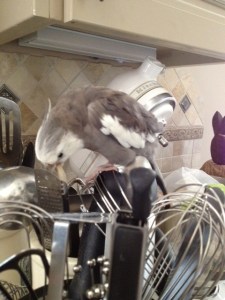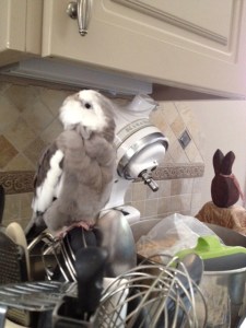 Because my mom’s kitchen so frequently produces delicacies that my avian eagerly anticipates, every so often a spontaneous quality control inspection is scheduled to be sure the facility is up to par.