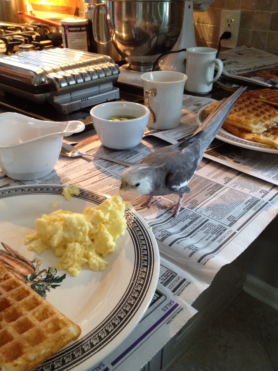 I will also admit to wondering if, to a cockatiel, those scrambled eggs taste just like, well…..chicken.
