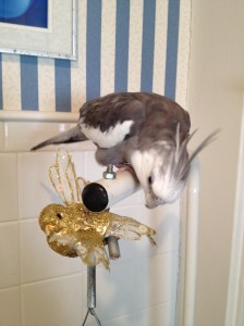 My feathery creature has a particular fondness for shiny things that can be easily detached from whatever surface they may have previously been well-adhered to.
