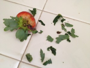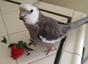 But woe to anyone who awakes and discovers that they are the dark green strawberry top, which is clearly a gustatory sensation in a cockatiel’s world.