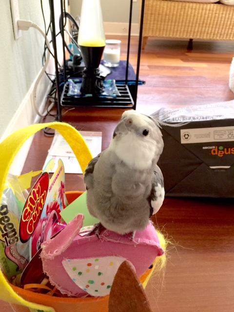 Happiest Easter to you and all your chicks from Pearl, Malti, their large featherless assistant, and the whole flock here at Casa Feathers n Beak!