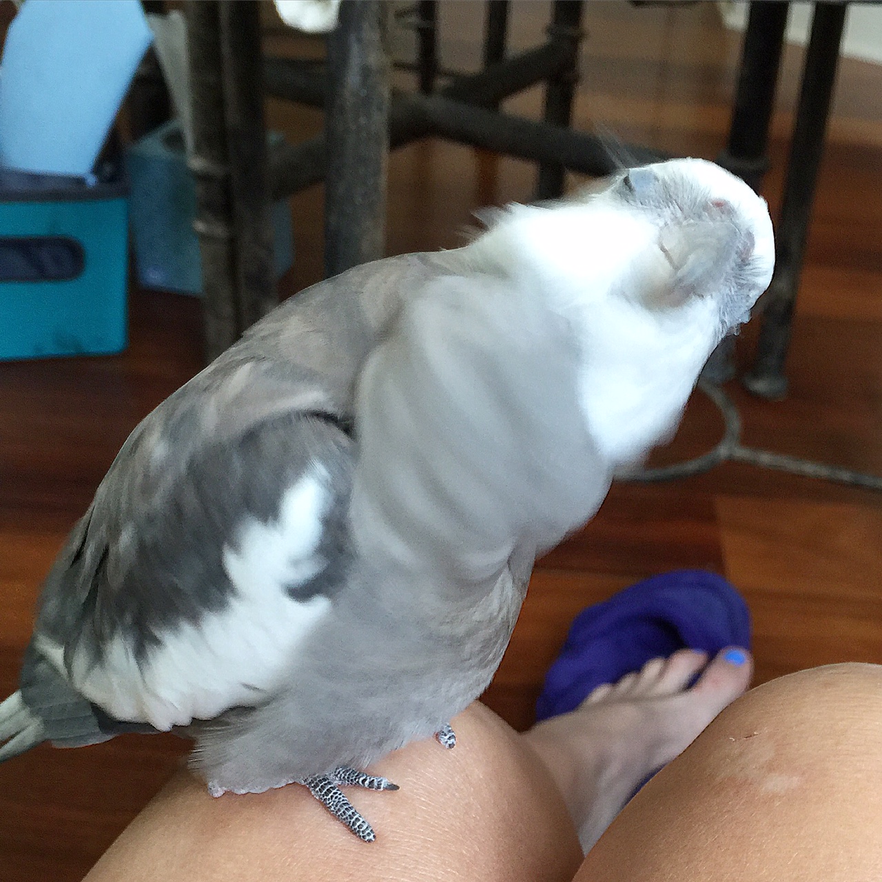 When you REALLY love somebody, you “ooh” and “aah” with cuteness overload when they perform their (patented) post-neck-feathers-head-shake yet again….and then you go and get out the dustpan and broom and start sweeping – without a single complaint!