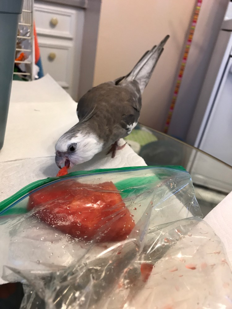 Let’s say you have feathers and your large featherless assistant brings home the first juicy and refreshing spring watermelon of the season.