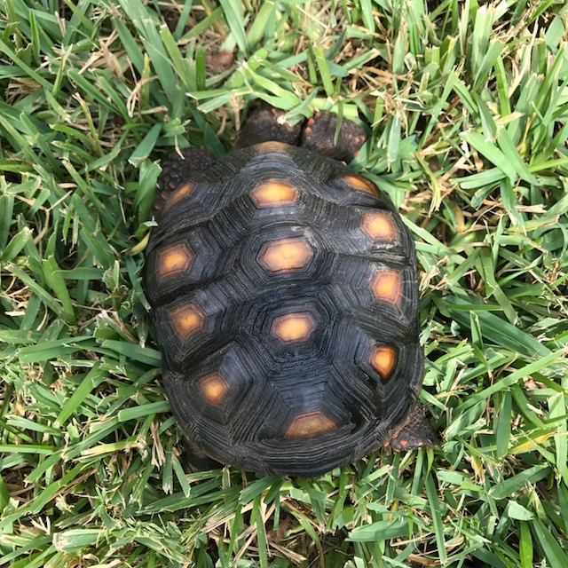 To add (um) fuel to that particular (er) fire, the red footed tortoise’s formal scientific name, Geochelone carbonaria, translates to mean “coal-like.”