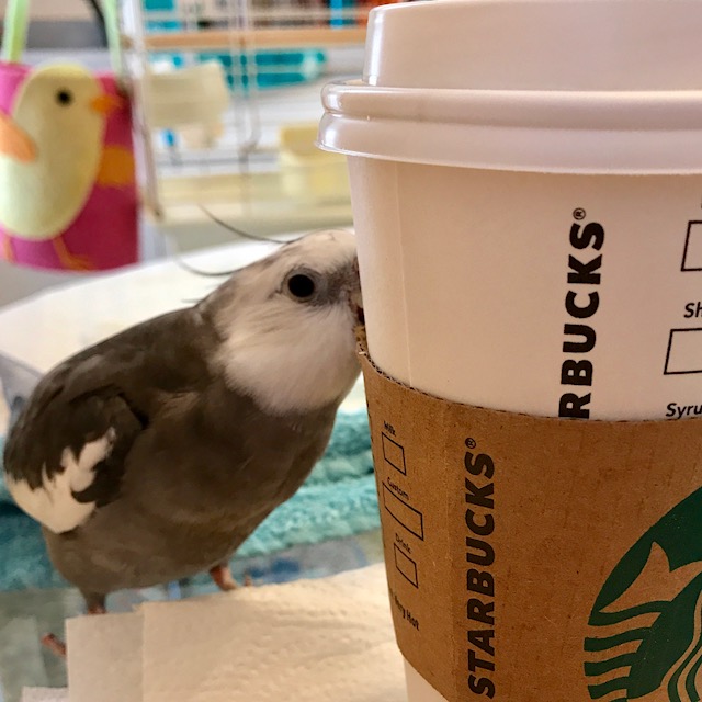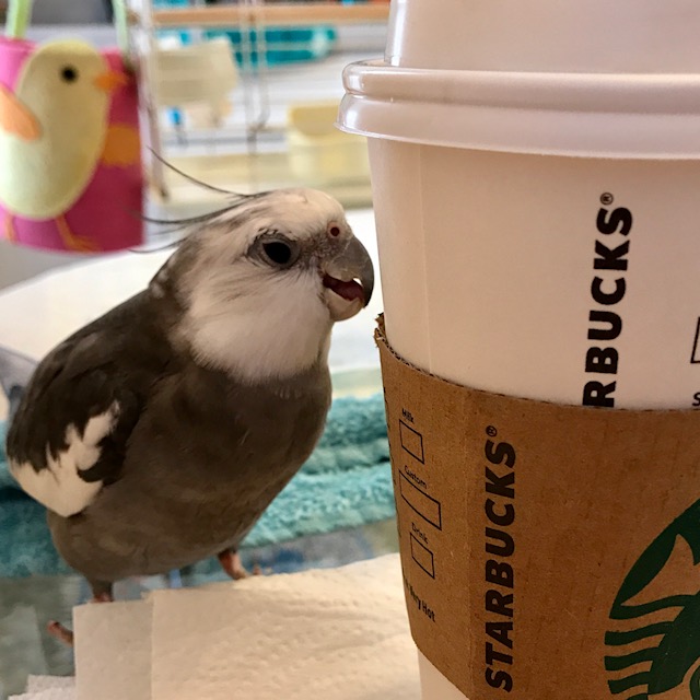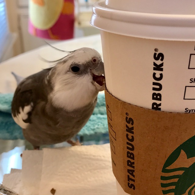 Just then, the mysterious being known only as “Mom” appears. The moment she sees the famous and feathery star, she coos, “Ohhhh…..my baby! How CUTE! Pearl – you know you aren’t supposed to chew cardboard anymore!”