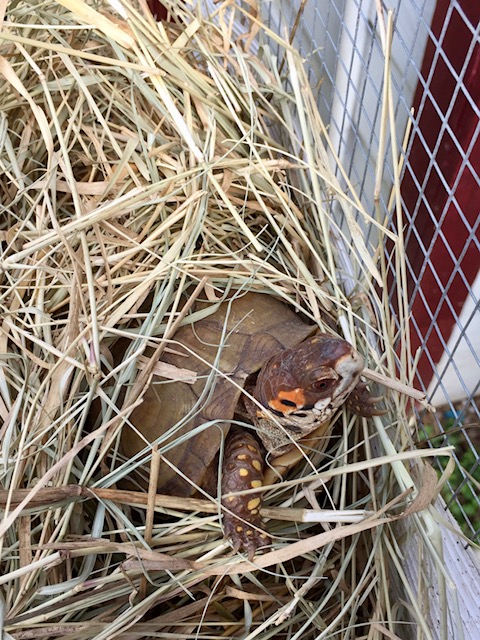 (We use hay to hibernate Bruce because of how his outdoor habitat is set up – this was our fabulous vet’s idea of how to provide him with cheap, warming insulation).