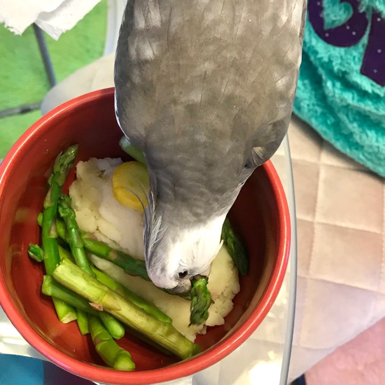 All of a sudden, you see movement near the bowl of veggies. Miracle of miracles – a petite (and very cute) feathered being has appeared to share your gratitude with you!