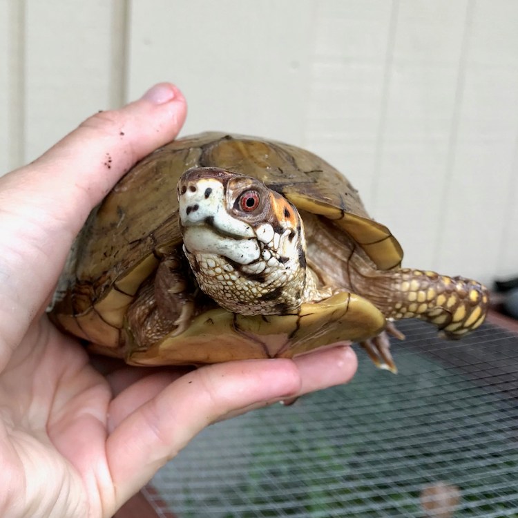 NOTE: Bruce is a rescued adult box turtle, and he is not used to being handled. Normally I do my absolute best to keep handling to a minimum, but after a particularly lengthy hibernation, I really needed to be sure all his parts were uninjured and healthy and working. To that end, this vid gives us all a rare chance to enjoy the cuteness of one of his signature “put me down now” moves I like to call “bicycle legs.”