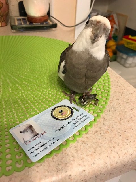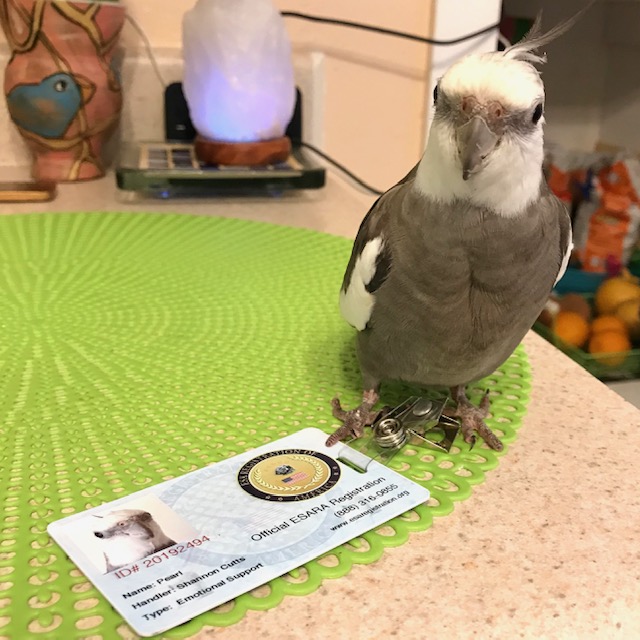 An Emotional Support Bird looking very cute, which is just one of his many supportive qualities.