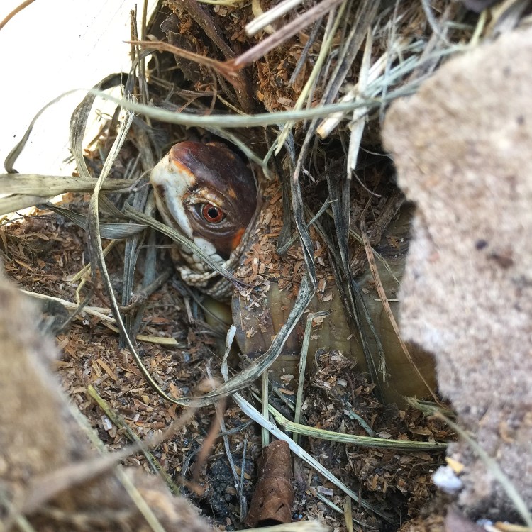 Even though you have a super-secure hinged safe sitting right on top of your legs, a smart and survival-savvy 3 toed box turtle always likes to have a Plan B in his back pocket. So to speak.