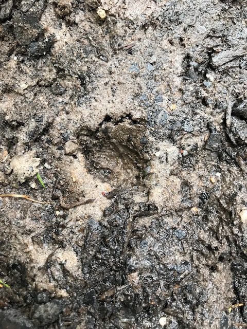 A very cute tortoise track left in the mud, where it can be promptly photographed and admired.