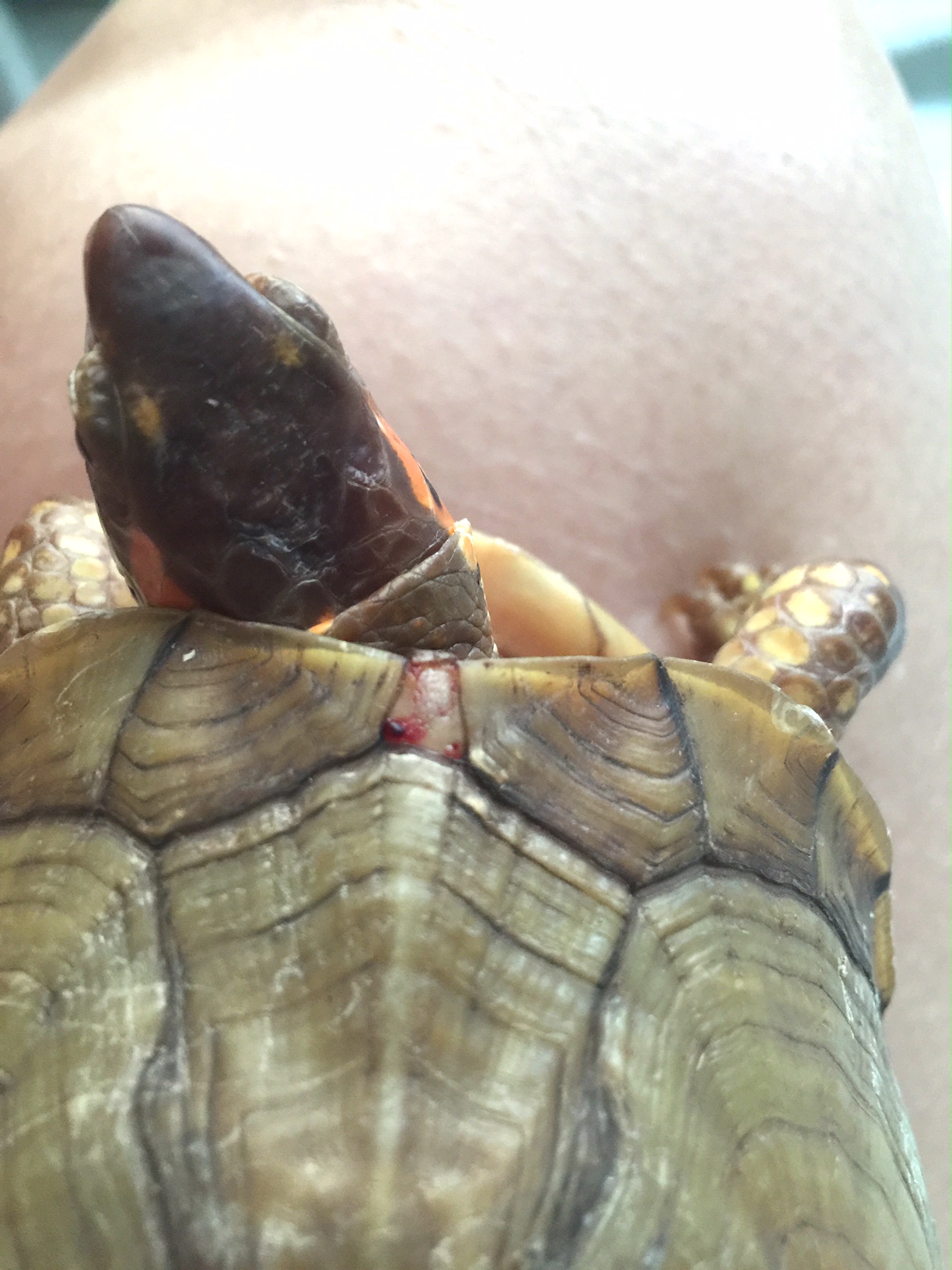 Previous Image Next Image BruceInjuredScuteNeck Bruce’s injured (and bleeding!) center shell scute. Share the love (& feathers & shells)! Share on X (Opens in new window) X Share on Facebook (Opens in new window) Facebook Share on Pinterest (Opens in new window) Pinterest Share on Reddit (Opens in new window) Reddit Share on LinkedIn (Opens in new window) LinkedIn Share on WhatsApp (Opens in new window) WhatsApp Share on Tumblr (Opens in new window) Tumblr Email a link to a friend (Opens in new window) Email Like Loading...