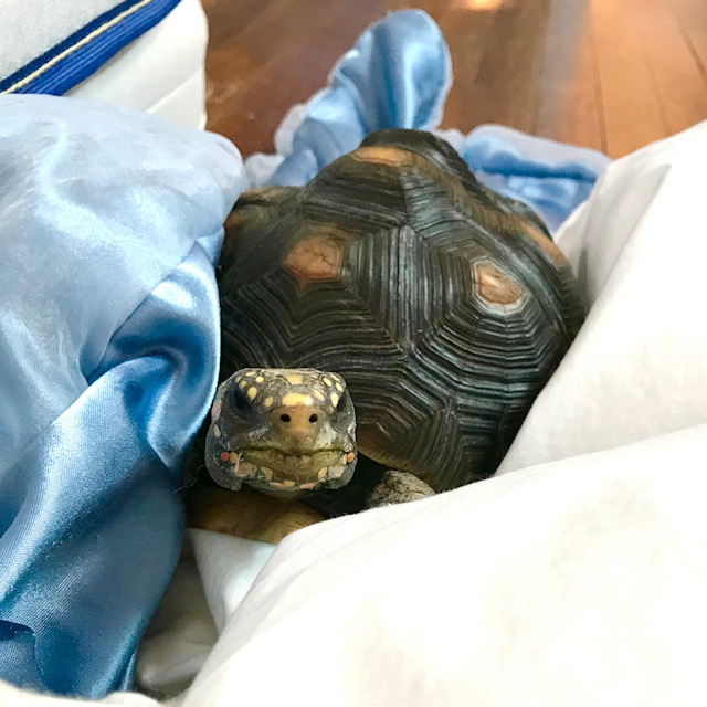 To get “breakfast in bed,” all you need to do is break out the “cuteness” and your large shell-less assistant will come running!