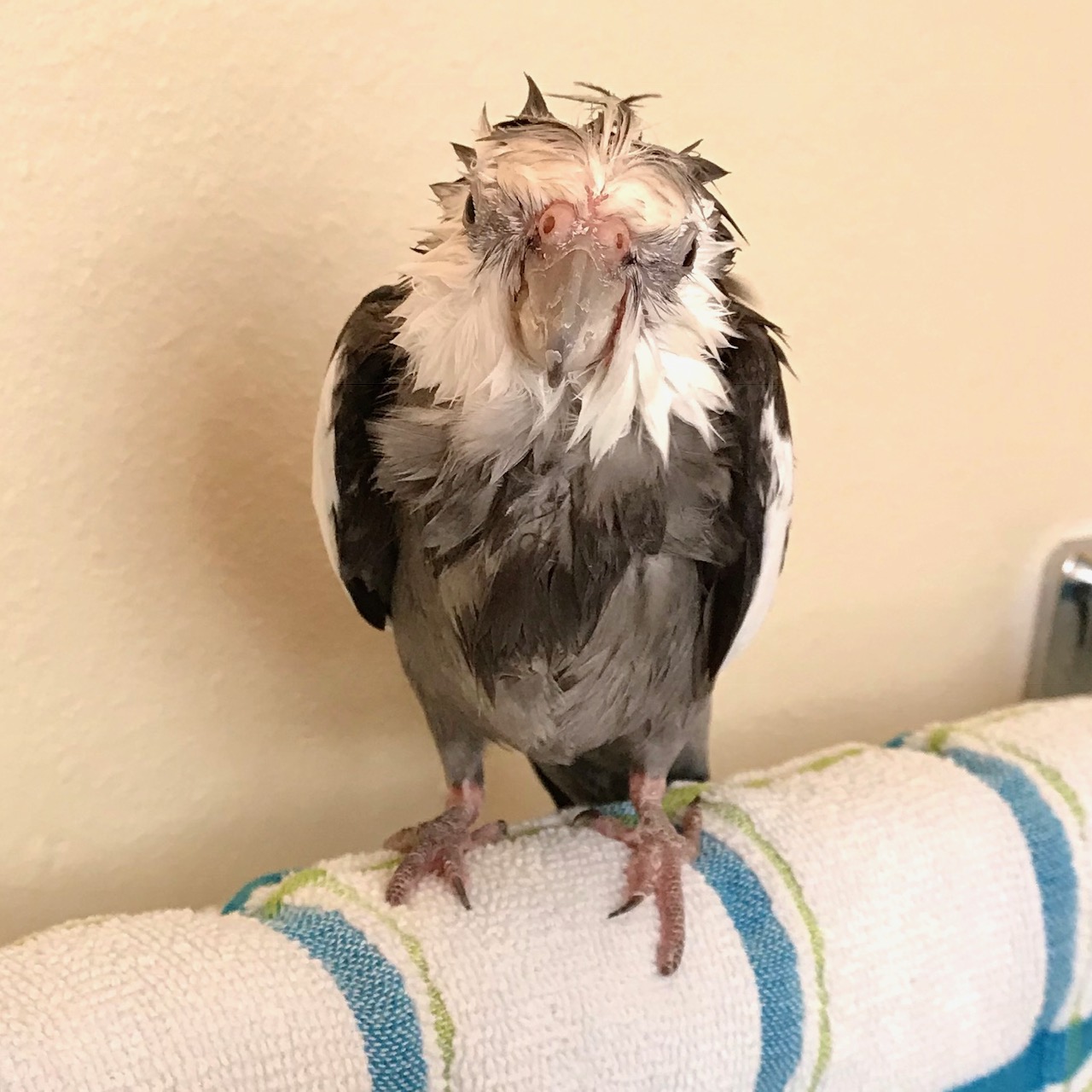 The first step is always the actual shower. While the final product aims for “wet bird,” what the VIP fans don’t ever see is that each look starts with “drenched bird.”