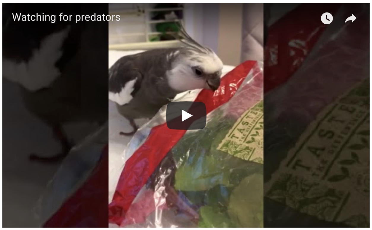 It is a big responsibility to be feathery and famous and have flocks of fans (both feathered and featherless). You have so much to do – preening, showering, chowing, nesting, napping….. Occasionally you also star in videos. For this installment of “Video Wednesdays,” Love & Feathers is proud to present Pearl Cutts in “Watching for Predators.” Enjoy! 🙂ContinueContinue reading “Video Wednesday: “Watching for Predators””