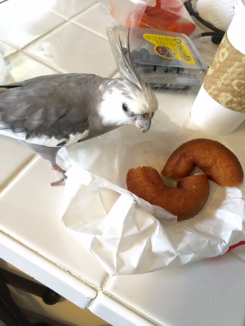 For the most part, flock life is smooth sailing (especially when you are the smallest, cutest, most feathery and famous flock member). But occasionally issues can arise….especially when it comes to individual flock members’ willingness to share their favorite dishes. Say, for example, that your large featherless flockmate brings home a delectable looking round itemContinueContinue reading “Day 202: Donut”