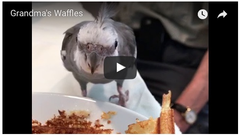 It is a big responsibility to be feathery and famous and have flocks of fans (both feathered and featherless). You have so much to do – preening, showering, chowing, nesting, napping….. Occasionally you also star in videos. For this installment of “Video Wednesday,” Love & Feathers is proud to present Pearl Cutts in “Grandma’s Waffles.” Enjoy! 🙂 http://www.youtube.com/watch?v=yuAB6aibpI8ContinueContinue reading “Video Wednesday: “Grandma’s Waffles””