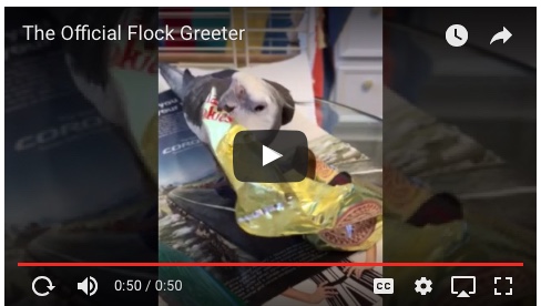 It is a big responsibility to be feathery and famous and have flocks of fans (both feathered and featherless). You have so much to do – preening, showering, chowing, nesting, napping….. Occasionally you also star in videos. For this installment of “Video Wednesday,” Love & Feathers is proud to present Pearl Cutts in “The Official Flock Greeter.” Enjoy!ContinueContinue reading “Video Wednesday: “The Official Flock Greeter””
