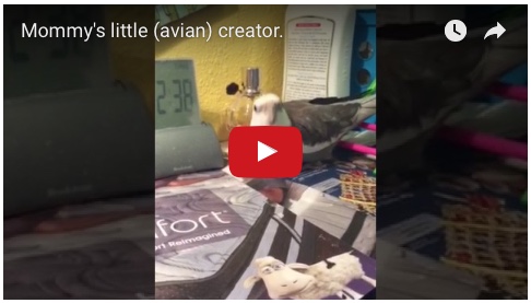It is a big responsibility to be feathery and famous and have flocks of fans (both feathered and featherless). You have so much to do – preening, showering, chowing, nesting, napping….. Occasionally you also star in videos. For this installment of “Video Wednesday,” Love & Feathers is proud to present Pearl Cutts in “Mommy’s Little Creator.” Enjoy! 🙂ContinueContinue reading “Video Wednesday: “Mommy’s Little Creator””